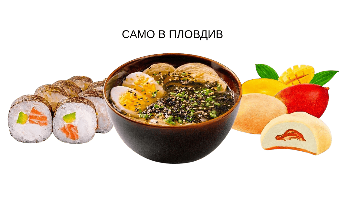 Вкусен азиатски обяд с доставка до вашата врата от Sunrise Food Търсите разнообразен и здравословен обяд? Нашето «Азиатско обедно меню 1» е създадено за тези, които ценят качеството и автентичния вкус. Комбинацията от топла азиатска пилешка супа и пресни суши роли Футомак Осака осигурява енергия за целия ден, а сладкото изкушение Мочи прави почивката ви пълноценна. В Sunrise Food използваме само най-пресните съставки, за да гарантираме, че вашият обяд ще бъде не само вкусен, но и полезен. Поръчайте онлайн през нашия сайт и се насладете на ресторантско качество в уюта на вашия дом или офис. Възползвайте се от нашите специални предложения за обяд от понеделник до петък от 12:00 до 15:30 ч.